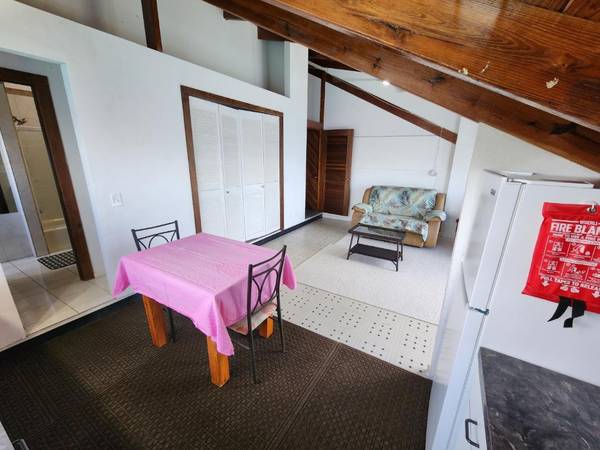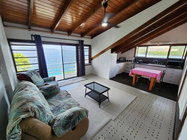 This apartment is on the East end of St. Thomas, in upper level of large private ocean front home with unrestricted views of St. John, Tortola and Thatch Cay. 5 min walk to clean sandy Coki Beach, 15 min drive to Red Hook. 645 sq ft, single occupancy, nonsmoker, no pets. Includes Electric, AC, Wifi. No prepaid last month's rent or security deposit required. Off street parking, private bathroom with shower. Cooking is with countertop electric appliances. In aerial pics, it is the long house on end of Coki Point. Back yard pic shows upper deck and sliders to that apartment. Need proof of employment, weekly income and good references.