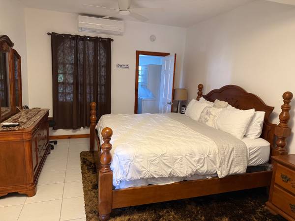 Private fully furnished 1 bedroom for rent. Quiet east end neighborhood- gated property. Pool, Jacuzzi tub and washer dryer. Sunrise and sunset views of the west, the BVI and STJ. Back up generator...