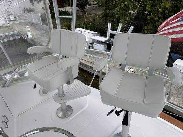 Extensively upgraded and professionally maintained, her 2024–2025 enhancements include ZF digital controls, Veem props, new helm seats, Starlink internet, a rebuilt refrigerator/freezer, and a new 12KW Northern Lights generator. Fishing gear features a Pipewelders tower, Pompanette unlimited chair, Miya Epoch US-9 teaser reels, dual fish boxes with Eskimo ice plumbed, and electric reel outlets. Comforts include a spacious salon, step-down galley, master stateroom, guest cabin, and custom tackle room.